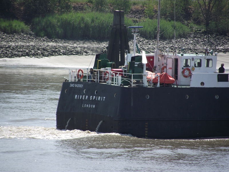 Un petit caboteur, le RIVER SPIRIT : 52 x 10 m. 1412 T Construit en 1986, pavillon anglais. Il a bien un n) maritime IMO