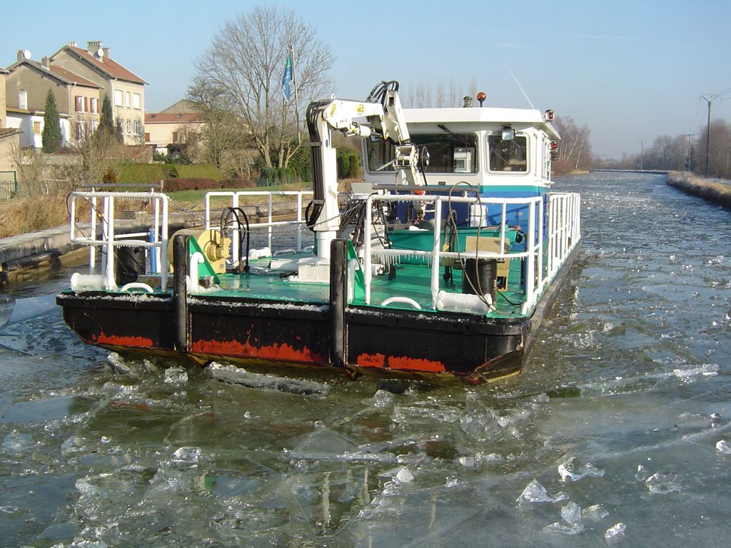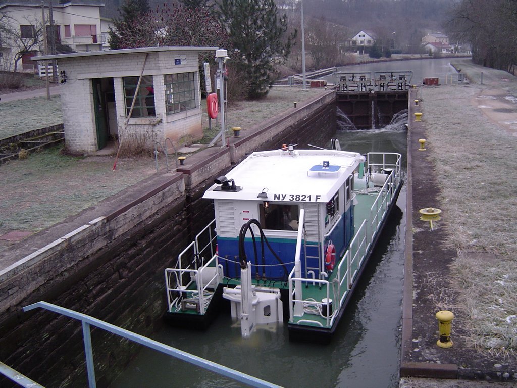 Mis à l'eau le 03 décembre 2004 au port de Frouard, en provenance (routière) du chantier Atelier de Bretagne Nord de Saint-Malo :