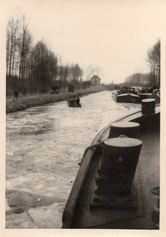 brise Glace en action 1955 a Travecy canal d'Origny (Sambre a l'Oise)