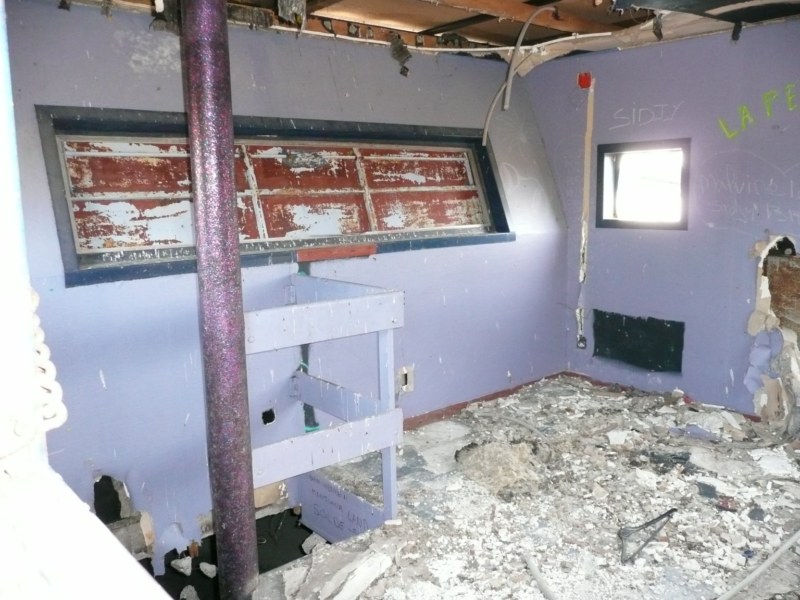Je n'ai pas pris de photos de l'intérieur, mais c'était un désastre : il restait des tables et des banquettes, tout était vandalisé...