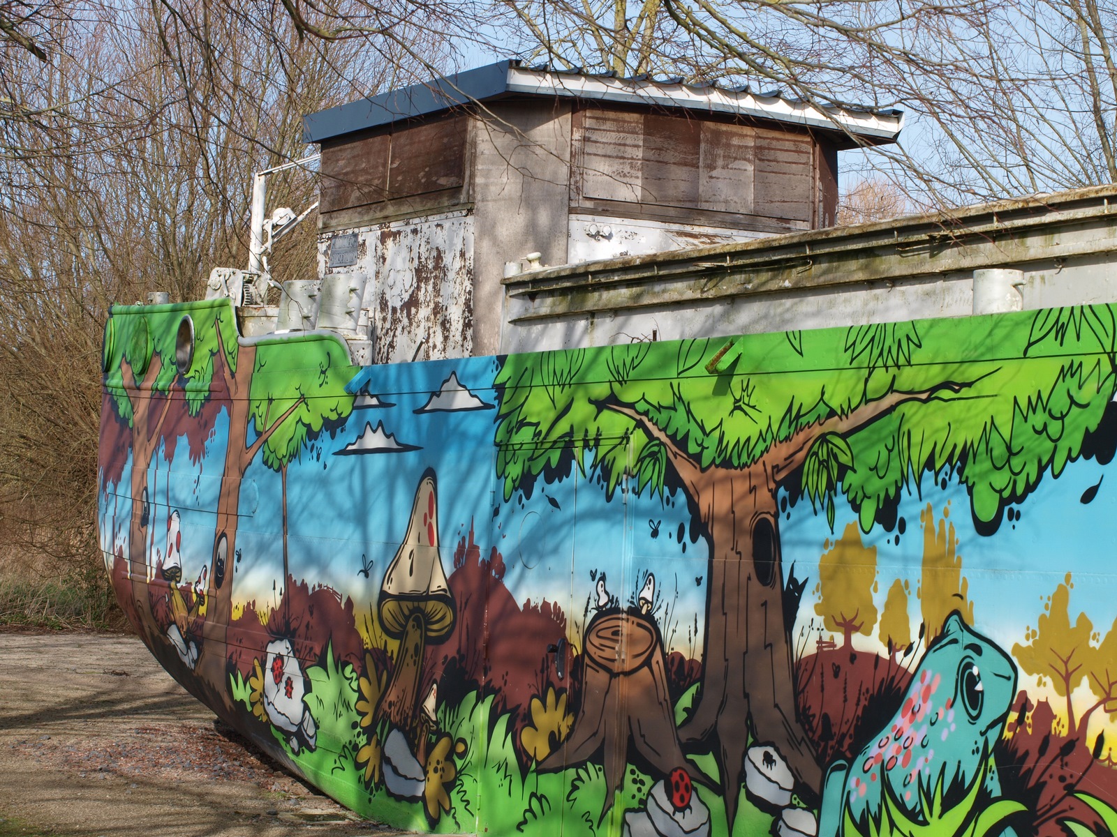 Péniche mise à sec à Deulêmont au bord de la Lys ... Cette péniche est géré par une association (