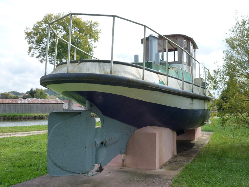 Je suis tombé sur un joli petit remorqueur l'autre fois... Il est repeint aux couleurs de VNF et exposé au niveau de la halte de Girancourt (88), bief 2 du versant Saône du canal des Vosges :