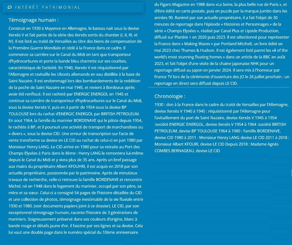Le contenu des pages Web étant parfois éphémère, je joins la fiche du parue sur le site PATRIMOINE MARITIME ET FLUVIAL.