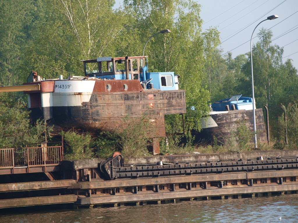 D’après ce que l'on voit, on dirait qu'il y a un système de déplacement de bateau ou de barge le long de ce quai.