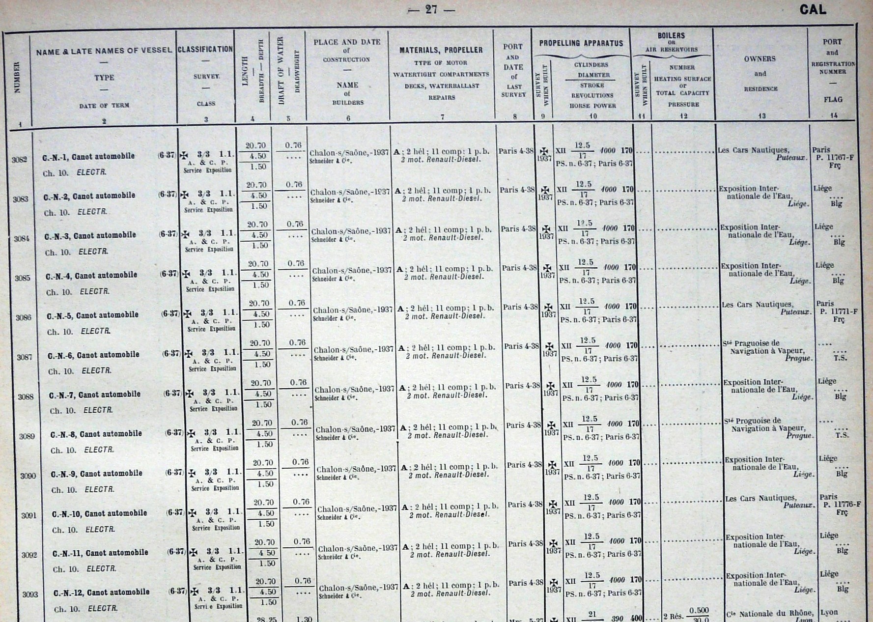 Selon un source allemand (Günther Benja, Personenschiffahrt in deutschen Gewässern) elle est construit en 1937 par Les Cars Nautiques à Puteaux, les dimensions sont 21,00 x 4,90 x 1,25 m. 2 moteurs avec ensemble 170 ch, mais (le livre est de 1975) peut-être ce ne sont pas les moteurs originales.