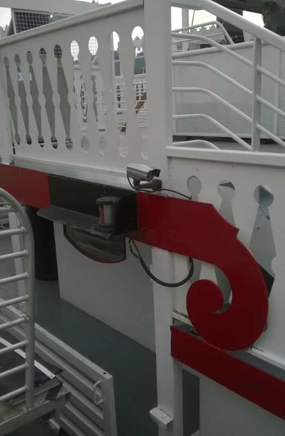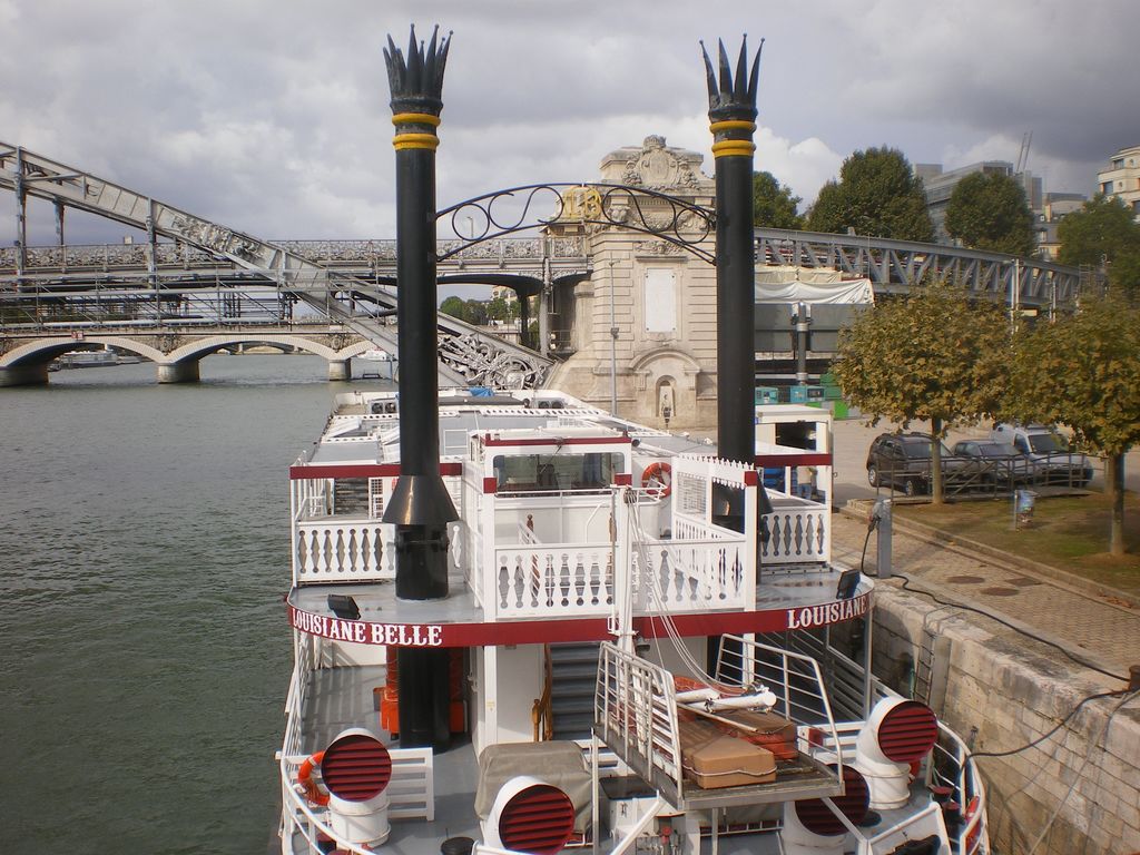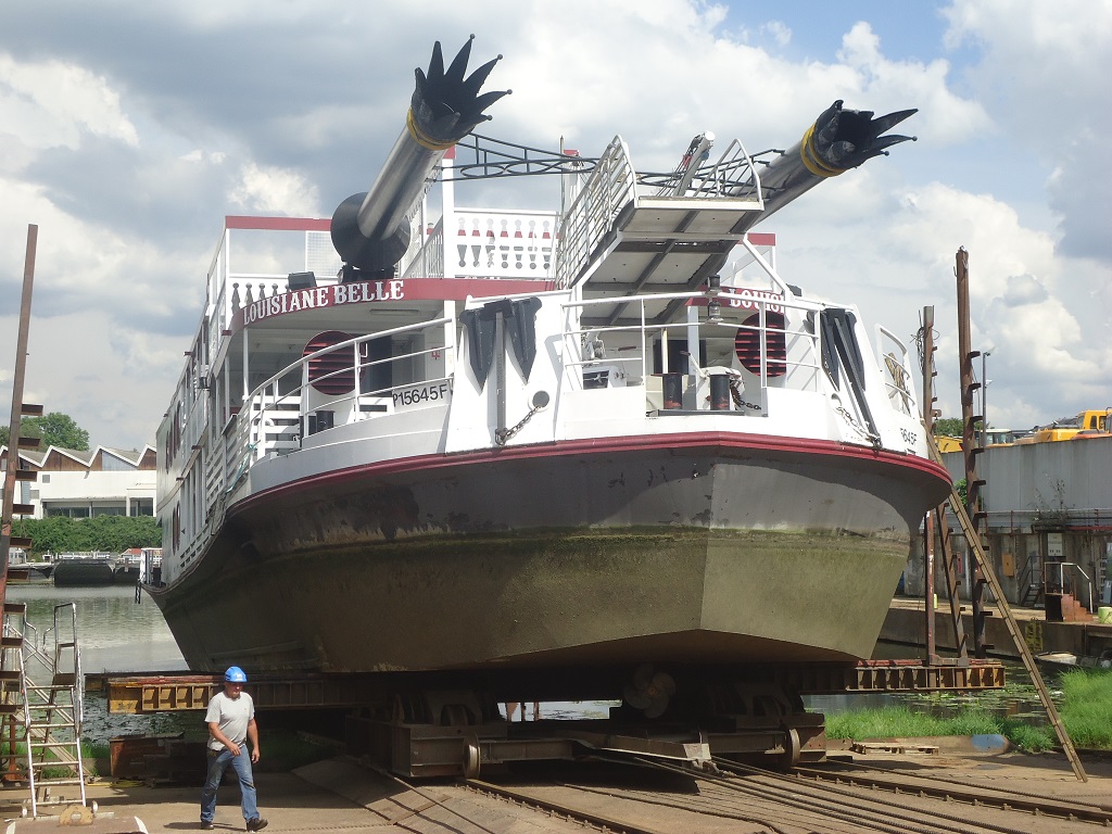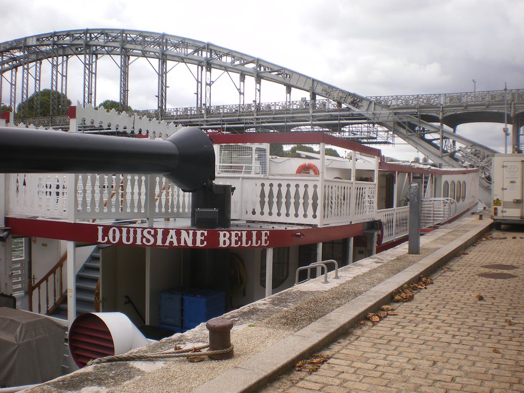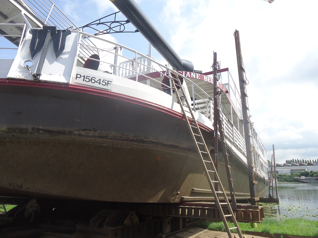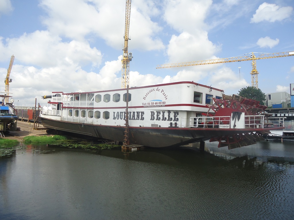 Les roues à aubes sont d`un type nostalgique ... avec des aubes à bois qui ne sont pas d`un type mobile pour laisser immerger les aubes dans l`eau d`une facon verticale. Bien sûr, ca marche, comme bateau passenger l`enfoncement du bateau n`est pas si grave. D`autre part, on pourrait s`imaginer que la propulsion du bateau n`est pas seulement achevée par les roues à aubes mais aussi par l`hélice avant le gouvernail.