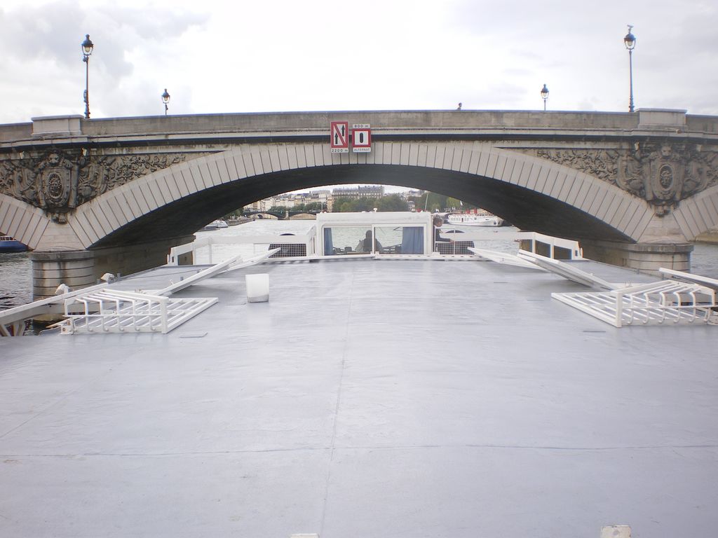 Assez rare car les deux moteurs sont à l'avant sur ce bateau.( Entre la quille et l'avant de la timonerie).