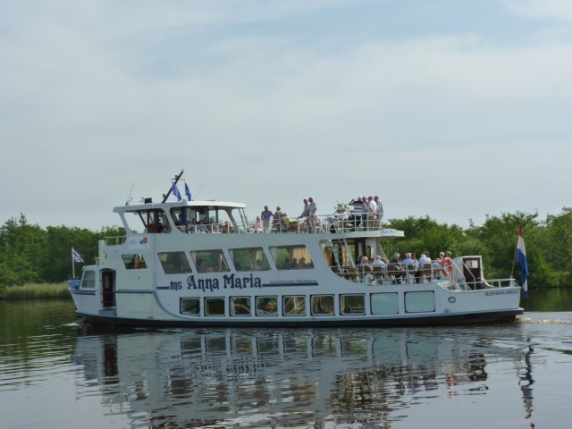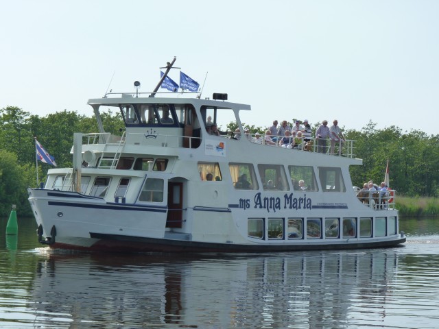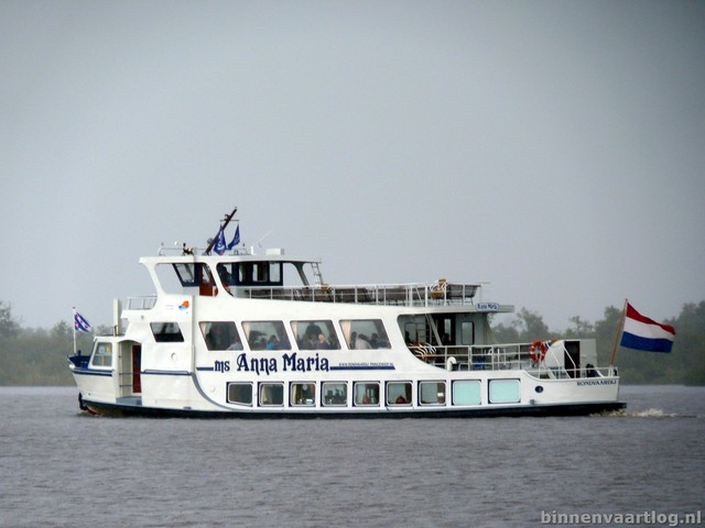 Anna Maria , 26,50 x 5,75 x 1,27 , 128 passagiers , Bouwjaar 1949 , Werf Kremer & Sohn in Elmshorn ( Duitsland ) , 179 pk General Motors (1970) , 1965 verbouwd bij De Hoop in Lobith , ex Adeline, ex Veluwezoom (1965) , ex Teufelsbruecke , eigenaar Rederij Princenhof in Eernewoude , ENI 03150443