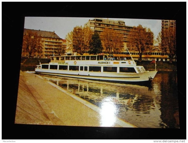 . Le bateau sur la photo est le Charles Frey qui était exploité par le Port Autonome de Strasbourg jusqu'au début des années 2000.Il est aujourd'hui toujours en activité sur le même secteur et sous la même devise et exploité par une société privée . Par ailleurs Croisieurope n'a jamais exploité l'ill.Le premier bateau de Alsacecroisieres a ses débuts en 82 était l'Alsace 1 qui était un bateau de promenade et non à cabines qui faisait des promenades locales sur le Rhin et servait essentiellement a relier Strasbourg au plan d'eau de Plobsheim ou Mr Gérard Schmitter avait au préalable un restaurant ou des soirées dansantes étaient organisées et qui s'appelait Le Rhinland.Ce n'est que par la suite qu'il s'est lancé dans les bateaux à cabines avec le Petite France,le Kléber ,le Hansi et le Kellermann.Ce n'est que début des années 90 qu'il s'est lancer dans la construction neuve avec le Ste Odile etc....À tout hasard j'ai retrouver une carte postale Delcampe de l'Alsace 1. CordialementBaron (ex Dragon) a écrit:Je me pose la question suivante :