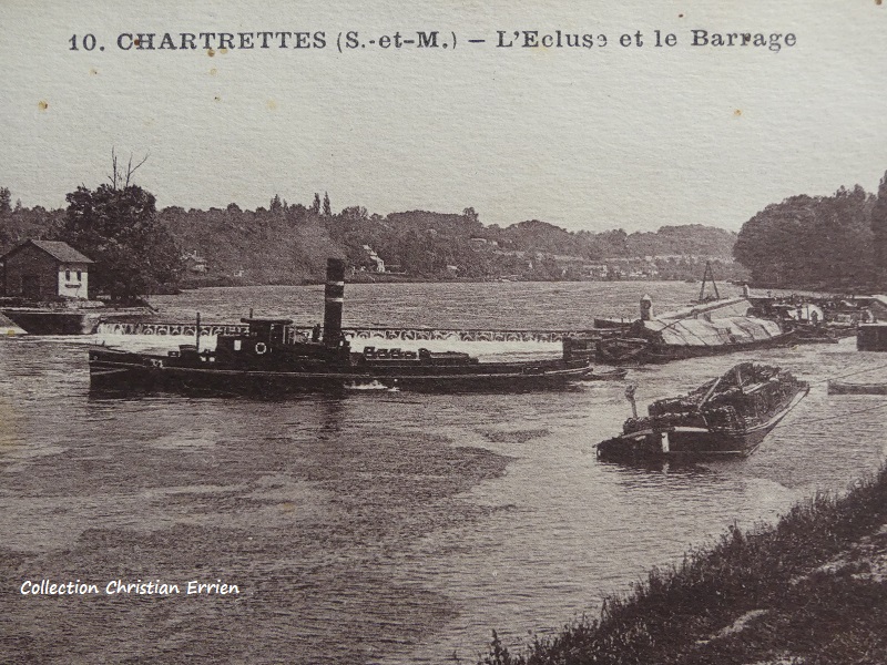 sur cette carte des années 20 on voit un bateau en mauvaise posture à la sortie de l'écluse de la cave. Sa devise n'est pas lisible sur la carte sauf que j'ai trouvé une carte photo indiquant que ce bateau se nomme VLINDER ce qui signifie papillon en Neerlandais. La première flûte HPLM derrière le remorqueur est le SERBE. Le remorqueur n'est pas nommé