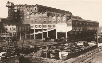 on peut voir plusieurs bateaux, de natures diverses et variées, dont une flûte de l'HPLM à quai, le