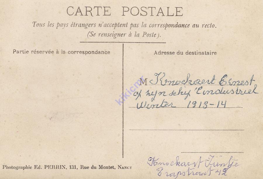 Pas d'indication, mais peut-être un indice : la dernière ligne, à gauche ; le photographe éditeur de la carte-photo est de Nancy ! Ah ah !