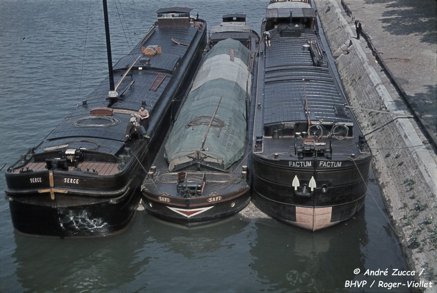 Sur le site bibliotheques-specialisees.paris.fr, on trouve deux diapositives couleur 24 x 36 mm d'André Zucca (1897-1973), photographe, datant de la période fin 1941-août 1944, conservée à la Bibliothèque historique de la Ville de Paris, avec quatre bateaux amarrés au quai de la Rapée, juste avant l'entrée du canal Saint-Martin :