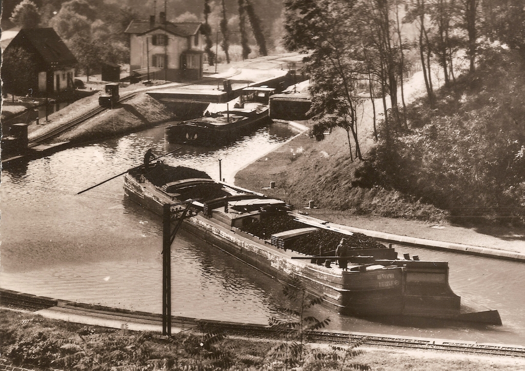 Très belle photo, on aperçoit même le tirage du "MUSTAPHA" qui part du tracteur le plus proche de l'écluse et est relâché pour le croisement...