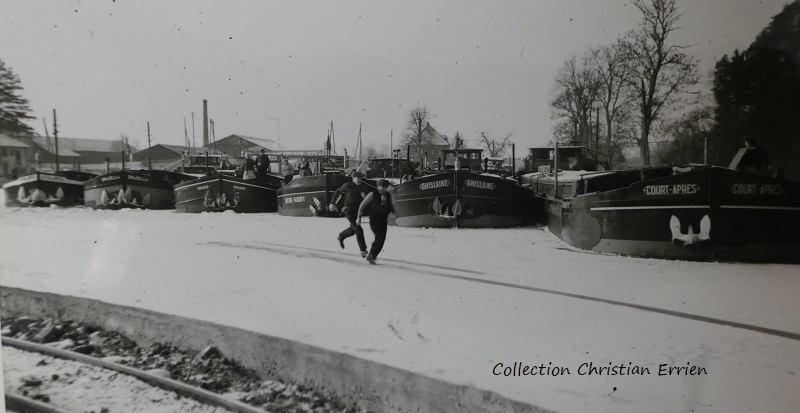 Une autre vue originale des bateaux pris dans les glaces durant l'hiver 53-54 à Niderviller