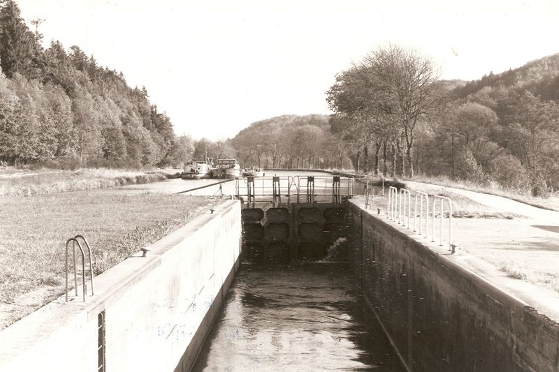 Une photo du canal des Vosges à Uzemain, écluse du Pont tremblant, en 1990 :