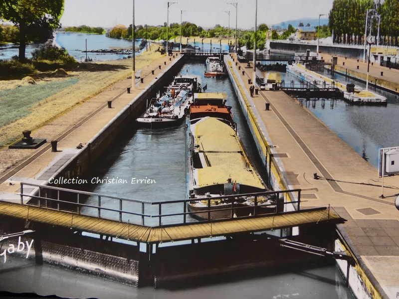 Sur la carte éditée dans les années 70 les portes amont s'ouvrent et on ne peut identifier que Simoun.