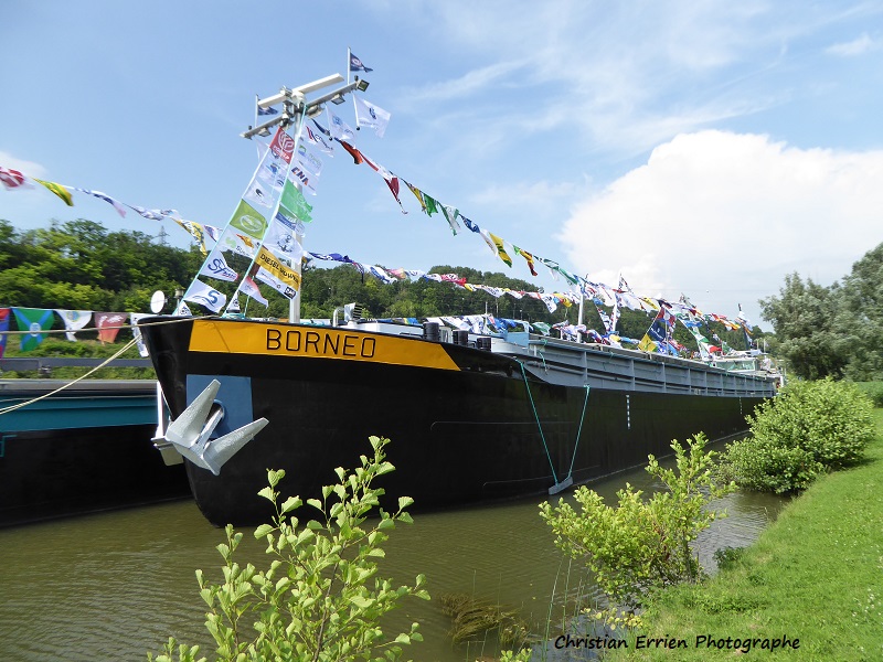 Il y a OXYGENE à l'extérieur puis WIND STAR FREEDOM MILADY BORNEO ROMANTICA bien sûr , peut-être d'autres bateaux invisibles depuis la berge , devant SAJ et sa barge et CHRISYA qui vient d'arriver...