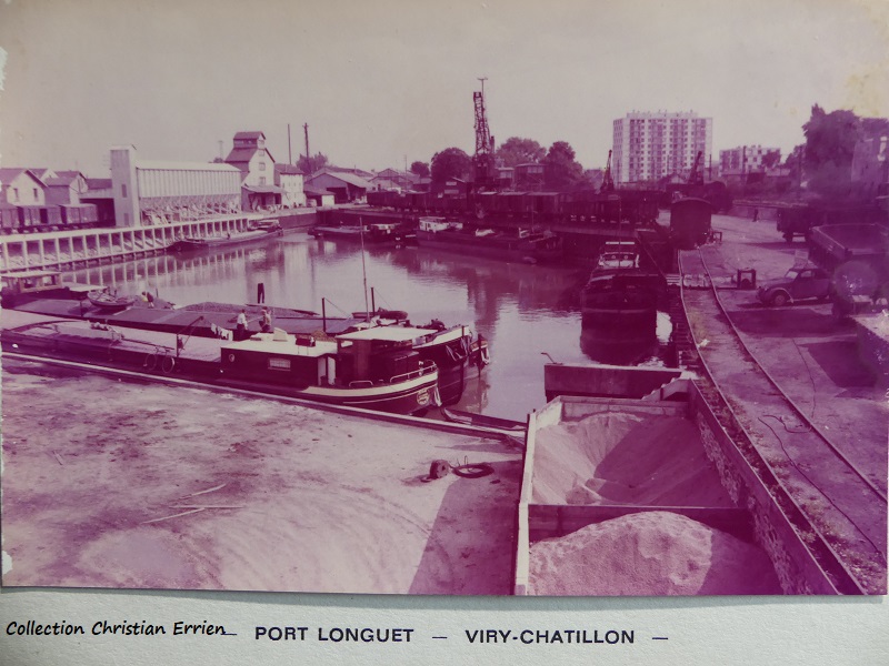 Voici une photo collée sur carte de visite montrant le port Longuet à Viry Chatillon. J'imagine que c'était une darse qui a disparu.