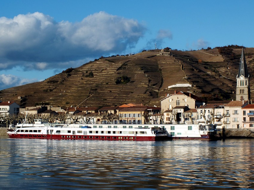 Ce bateau est garé en rive droite à Tournon, face au camping.