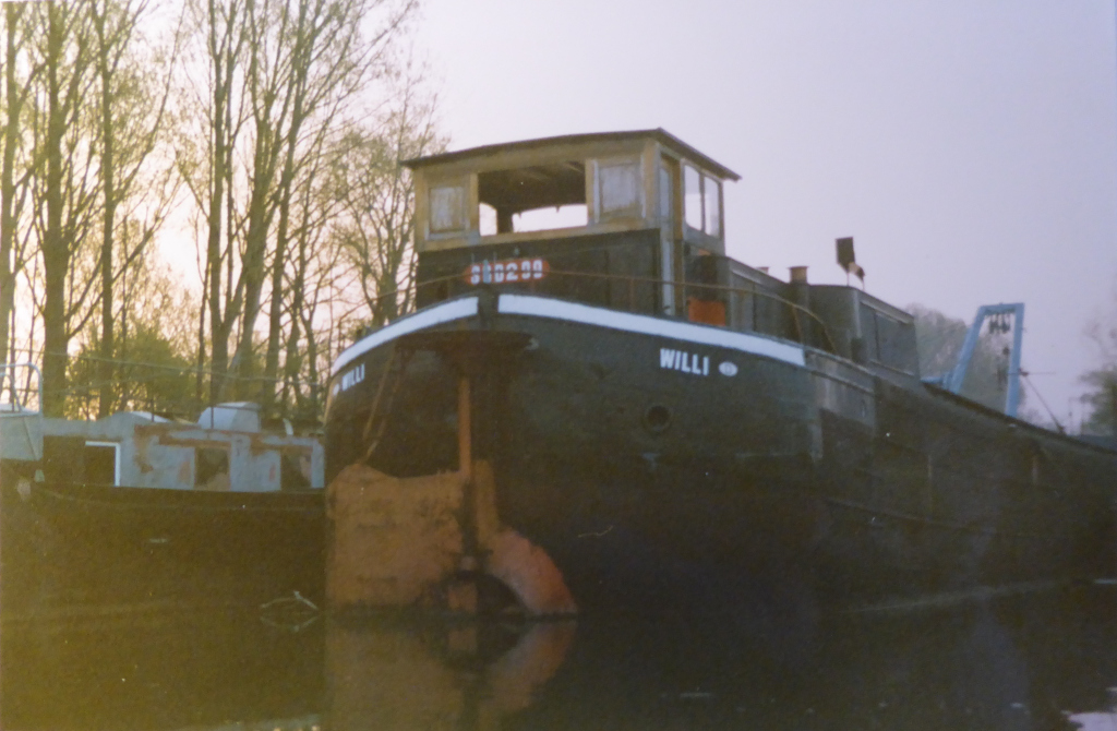 Je joins ici deux photos du WILLI que j'ai prises le 25 avril 1987 à Speyer (Spire) sur le Rhin. Sur la rive droite - en face de l'entrée du port de Spire sur la rive gauche - il y a un endroit à l'abri du courant où reposent toujours longtemps quelques petits bateaux. C`est là que le WILLI était en 1987.