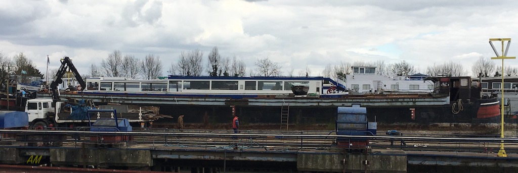 Il est stationné en face du chantier d'Achères depuis qu'il a quitté Port Marly.