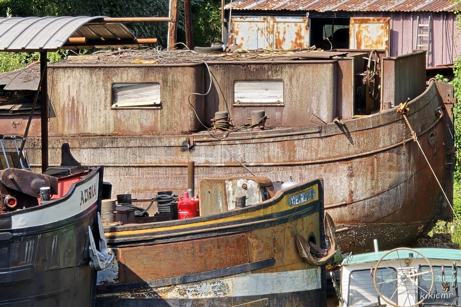 Après publication des photos dans le groupe Facebook « Voies navigables de Nord-Est », on peut maintenant dire qu'il s'appelle REX. Et cette devise est citée sur notre forum par Gernot, dans le sujet du WODAN : il parle du REX à André Hawner. Ça doit être lui qui s'apprête à être déchiré sur le chantier...