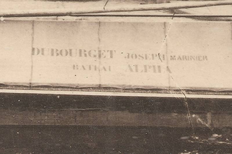 Y a une plaque blanche sur l'avant, sur laquelle on arrive à lire *LPHA, on aurait donc pu deviner que ce bateau s'appelle ALPHA, mais grâce aux inscriptions portées sur sa bâche, c'est beaucoup plus précis :