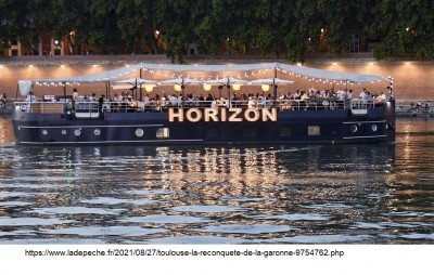 A priori le bateau est un bar sous le nom HORIZON qui propose de prendre un verre tout en naviguant.