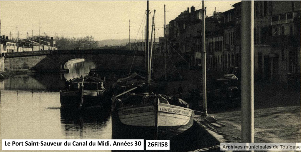 Sur cette photo visible sur le site internet des Archives de la Ville de Toulouse on peut voir le bateau avec sa devise CLAUDE MARIE, à noter qu’il est équipé d’un mât de charge.