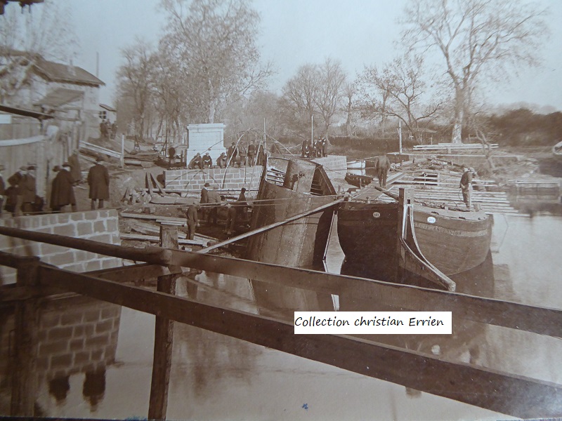 Je crois avoir compris que sur la photo on voit un caisson qui, fixé à la barque va être positionné pour la construction d’une pile.