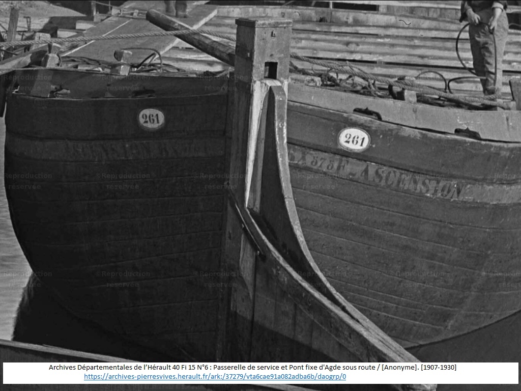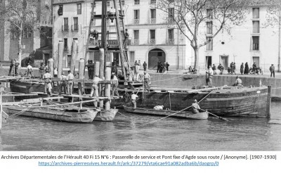 Son titre ‘’Passerelle de service. Pont fixe d’Agde sous route (1907-1930).