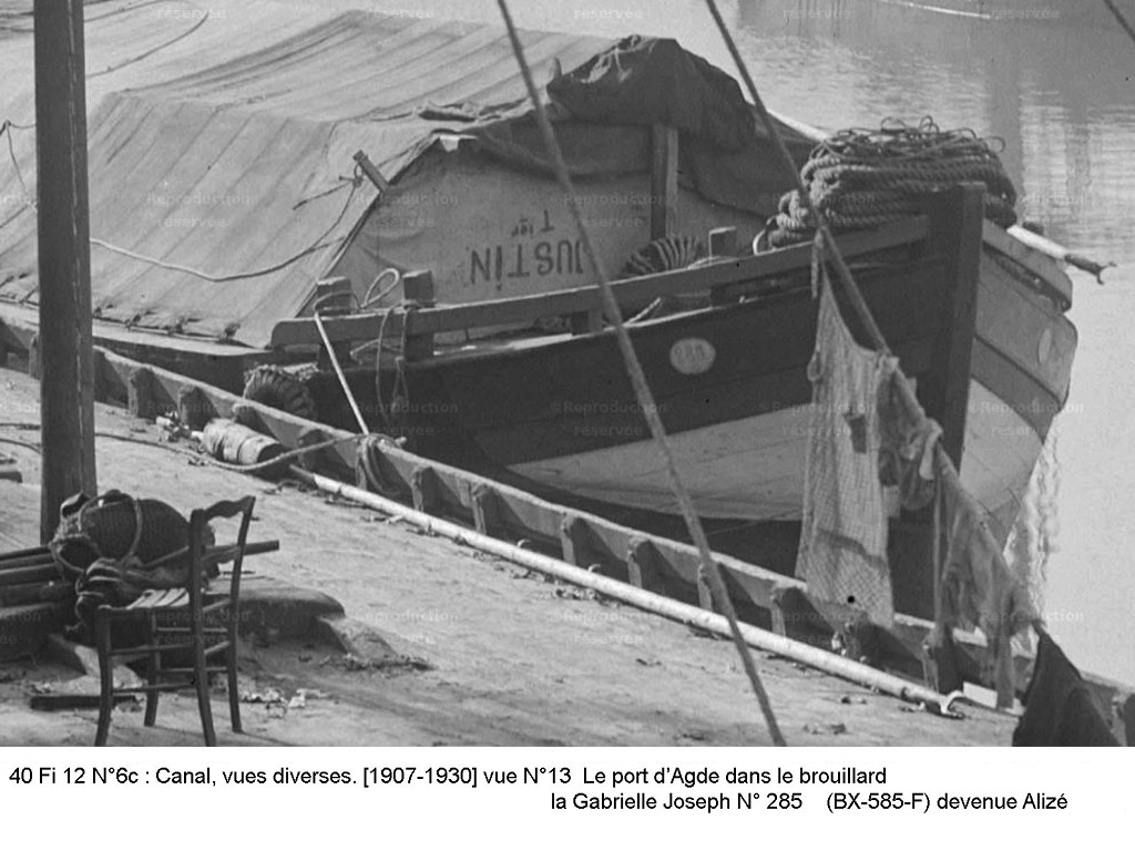 GABRIELLE JOSEPH n° 285: sapine en bois construite à Trèbes en 1901 pour le compte de Durand Henri à Cette.