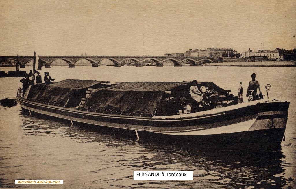 Coulé le 04/08/1943 à Langoiran. Germain Maris a mouillé le bateau chargé pour passer la nuit. Le bateau s’est échoué, s’est crevé et a fait le plein à la marée.