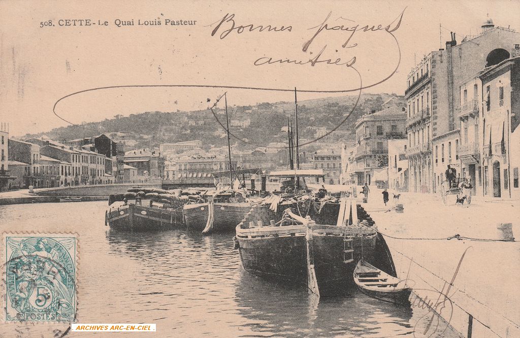 Sur cette carte postale de Sète on peut voir au premier plan un bateau de l’étang de Thau.