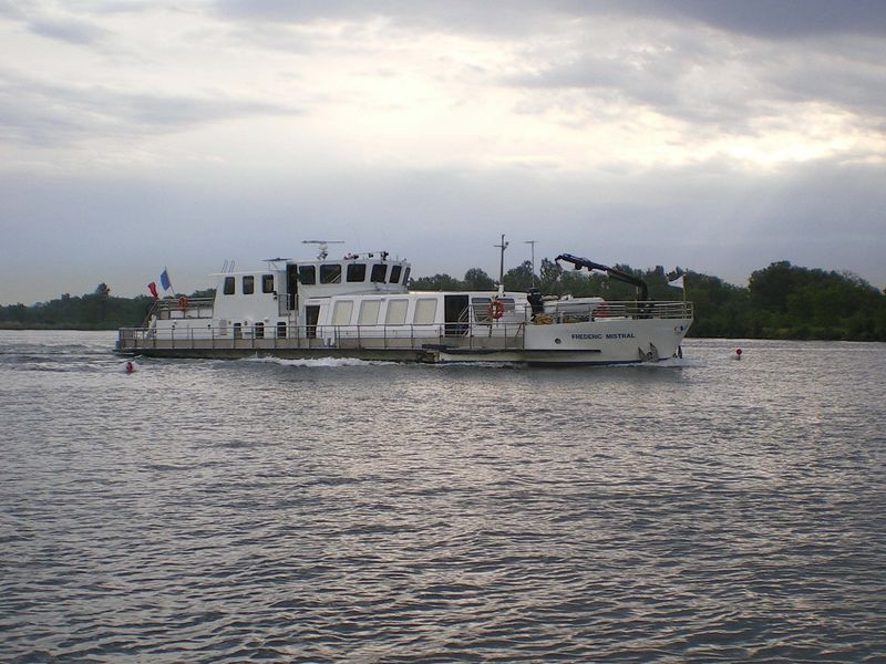 Le Frederic Mistral (CNR) en plein travail de sondage sur le Rhône .