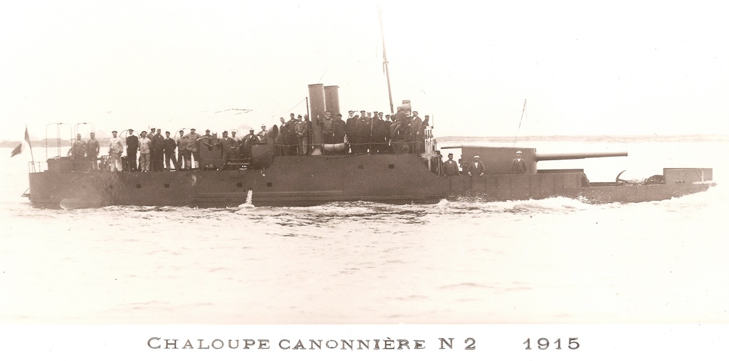 sources : carte postale de ma collection - renseignements tirés des articles de "Marines magazine" n°52 (octobre 2008 : "Les canonnières fluviales au combat") et n°58 (avril 2010 : "Les canonnières fluviales françaises de 1915 à 1917", par Marc Saibène) et de "Marines et Forces Navales", hors-série n°2 (janvier 2011 : "Les canonnières fluviales en opération 1915-1917", suite de l'article de Marc Saibène cité précédemment)