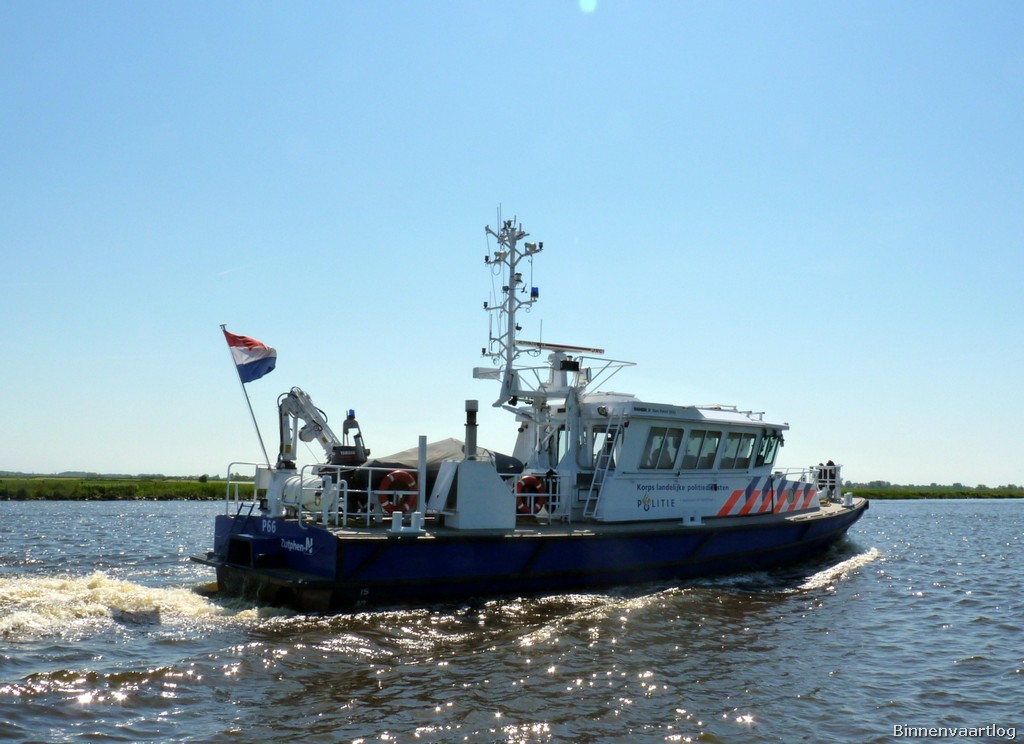 P 66 , 18,80 x 5,25 x 1,25 , Bouwjaar 2000 , Werf Damen Shipyard in Gorinchem ( Nederland ) , 2 x 605 pk MTU , eigenaar KLPD , afdeling waterpolitie.