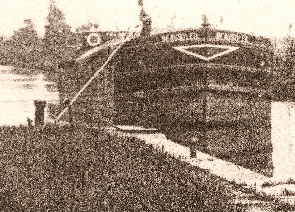 ...jusqu'à ce que hier soir, en cherchant un livre bien particulier dans mon fouillis, je tombe sur un numéro de la revue "Rapports France-États-Unis" qui consacre un article à la navigation fluviale. Je me mets à le feuilleter, et devinez sur quoi je tombe! L'arrière de notre marocain! Avec devise et matricule bien lisibles!