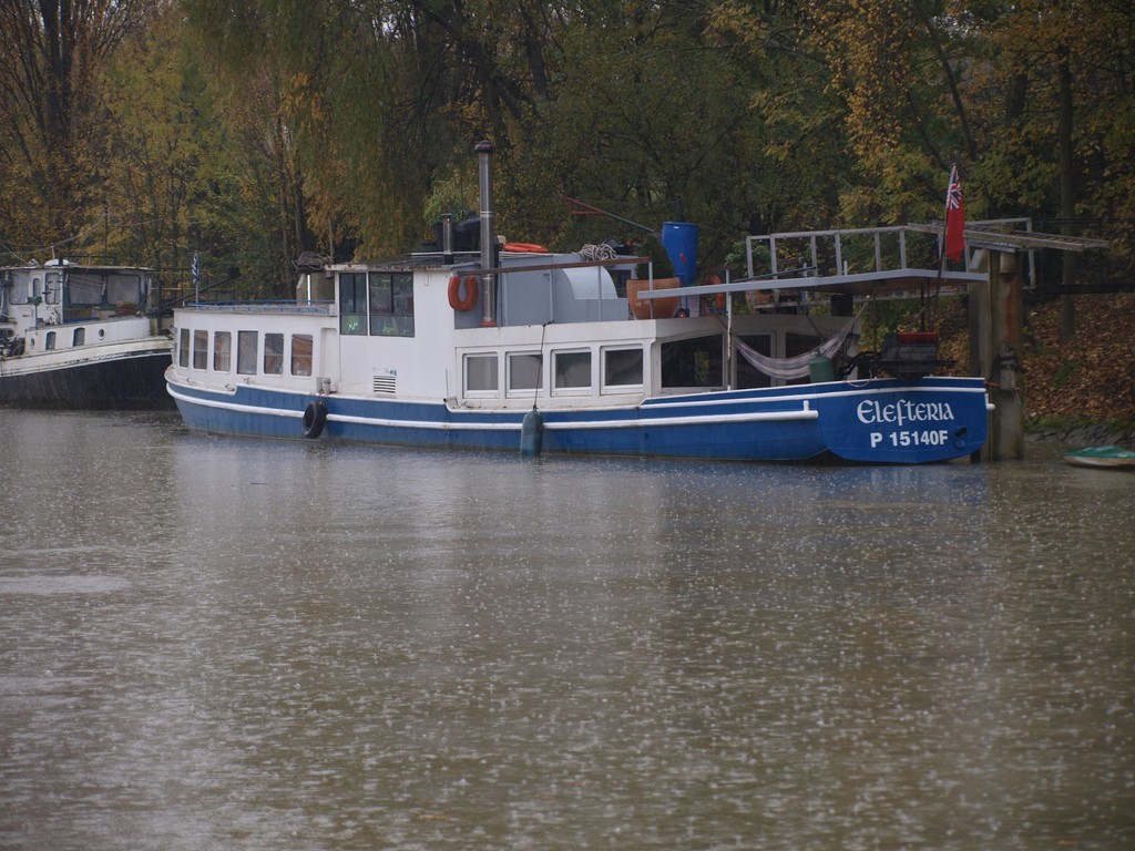 Sans certitude, ce bateau aurait eu comme ancienne devise au milieu des années 90 "NA KU PENDA" Ce serait un ancien bateau à passagers du Rhin avec à l'époque un moteur Deutz de forte puissance et refroidi....Par air! D'autres coques de même construction sont visibles dans le bassin de la Seine. Et de l'Oise...!