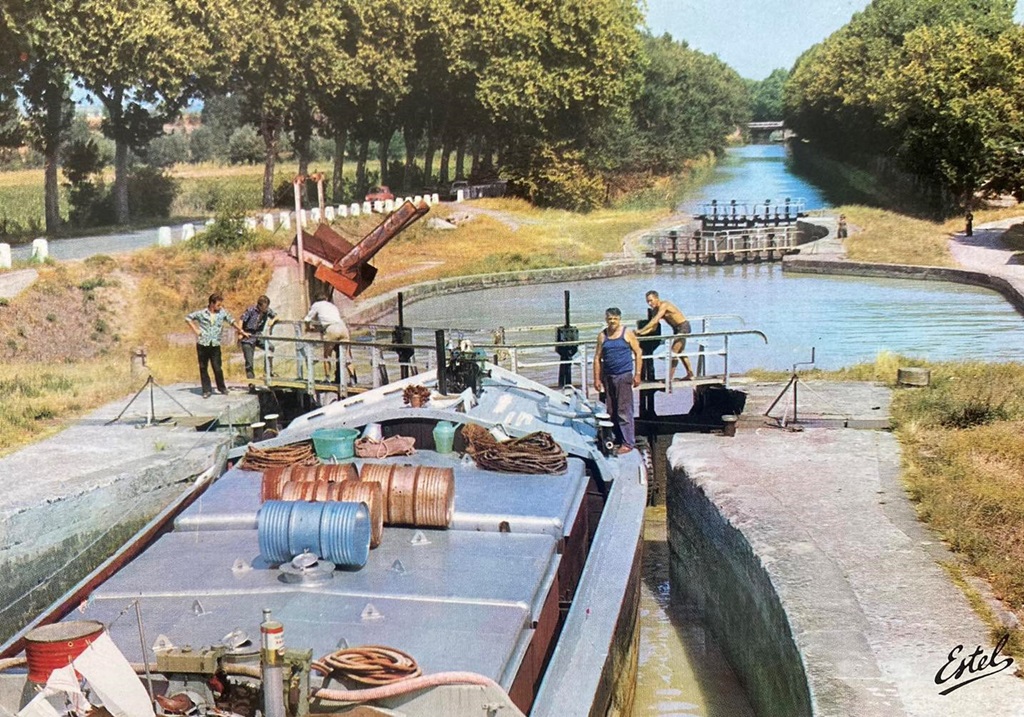 Le JANINE dans l'écluse de FRESQUEL DOUBLE.