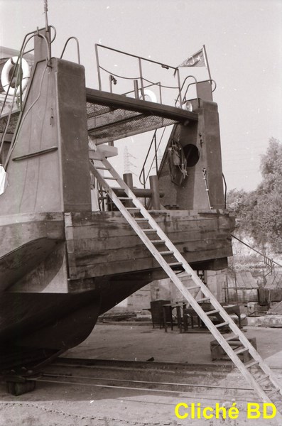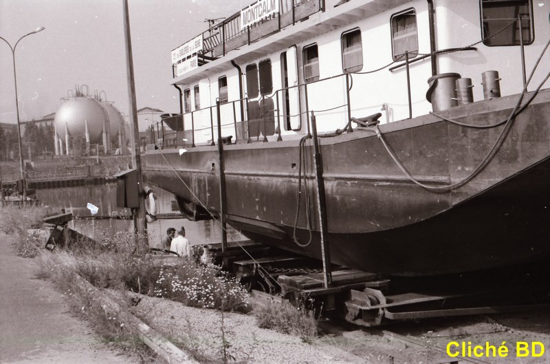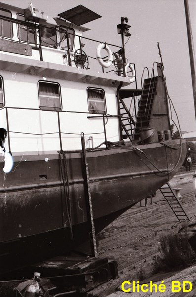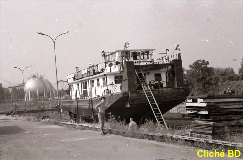 Oui.. j'avais environ 6 ans... et un pousseur etait amarre a bord a nous en attente de l'ecluse a Champagne... Je vais me baigner en traversant la barge, et en revenant, Statio me dit "Attends Eddy !" et bien sur.. je l'ai attendu... J'ai saute sur le bollard du VAGUS Ly 951 a l'epoque... et mes pieds sont partis devant, et la tete a atterri sur le bollard du Vagus, = quelques points de suture... + 1 glace + 1 visite de la salle de machines d'un pousseur... Peut-etre celui-ci !!