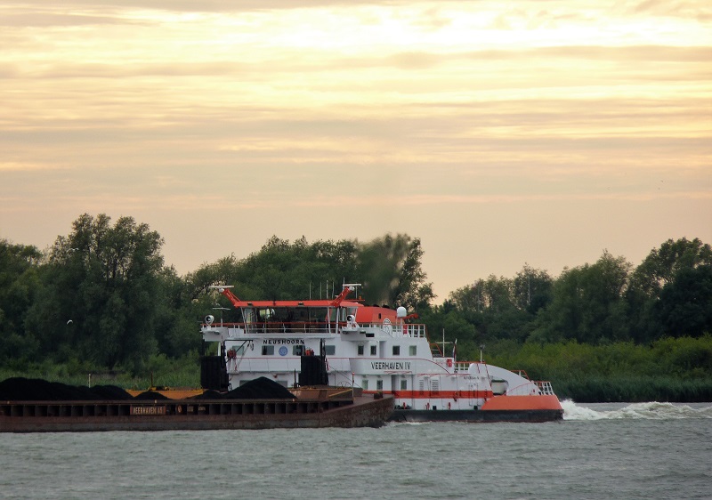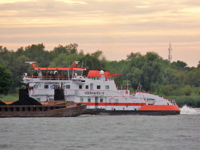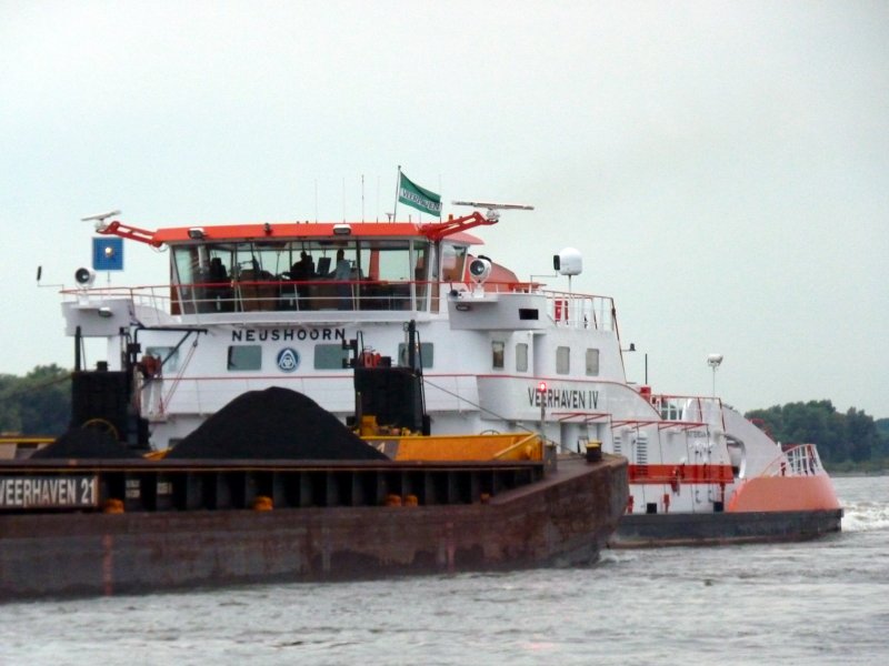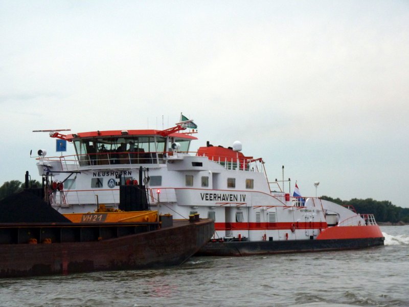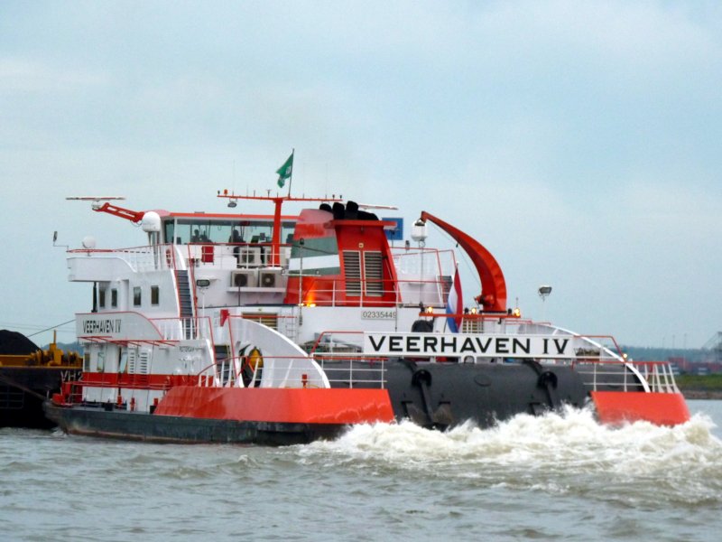 Veerhaven IV Neushoorn , 40,00 x 15,00 x 1,74 , Bouwjaar 2013 , Scheepswerf Gebr.Kooiman in Zwijndrecht ( Nederland ) , 3x Wärtsilä 8L20 CCRN2 1380kW bij 1000 omw/min en Twee stuks Verhaar Omega 3 kanalen boegschroefunits gedreven door 2x Scania diesels DI-16 52M 441kW , eigenaar Thyssen Krupp Veerhaven BV in Rotterdam , ENI 02335449