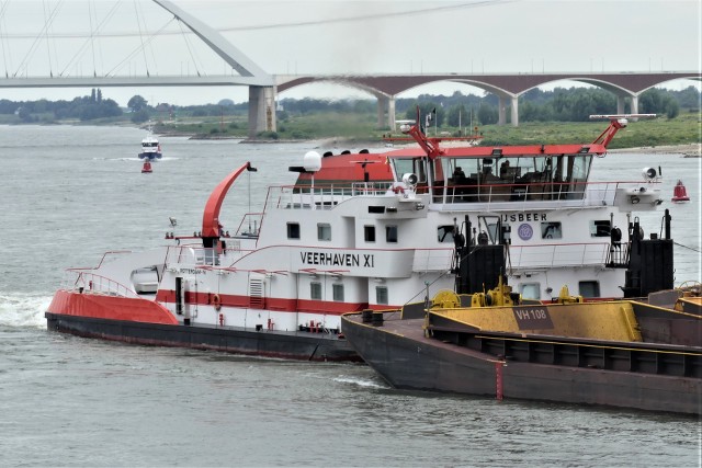 Veerhaven XI – IJsbeer , 39,99 x 14,98 x 1,82 , Bouwjaar 2009 , Werf Gebr. Kooiman in Zwijndrecht ( Nederland ) , 3 x 1800 pk MAK Motortype 8M20 8M20 en 2 x 500 pk Scania Verhaar Omega kopschoef , eigenaar Thyssen Krupp Veerhaven BV in Brielle , ENI 02333095