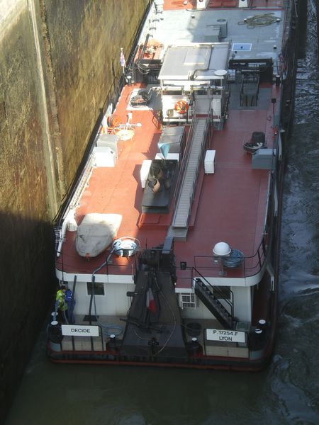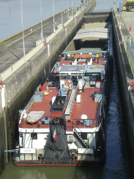 Il serre les ducs d'Albe et la rentrée dans le sas va bien (3 petits mètres de plus en mouillage)
