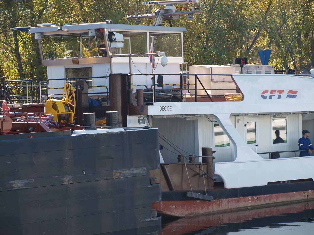 Vu aussi, ce jour, mais à la télé, sur la 5 ”Au bout, c’est la mer : le Rhône”, éclusant avalant, à Bollène-Saint-Pierre, avec deux barges de la CFT, vides, mais il est dit : ”l’une spécialisée pour l’éthanol, l’autre pour le méthane”. L’ensemble mesure 180 m !.. Et le journaliste embarqué, doit se baisser pour passer sous le pont SNCF d’Avignon.