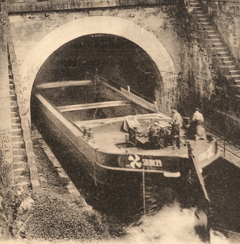- d'abord à vide et vu de l'arrière, entrant sous la voûte de Liverdun, tête Est (je pense qu'il allait chercher du calcaire à Aingeray) :