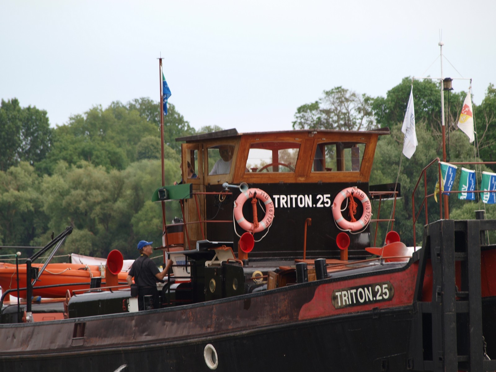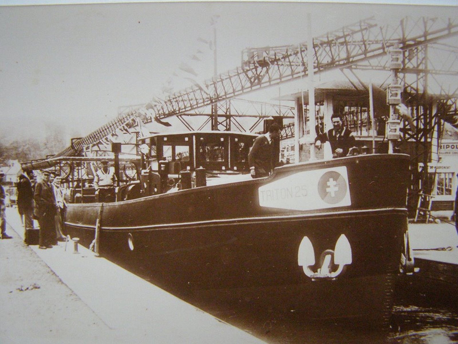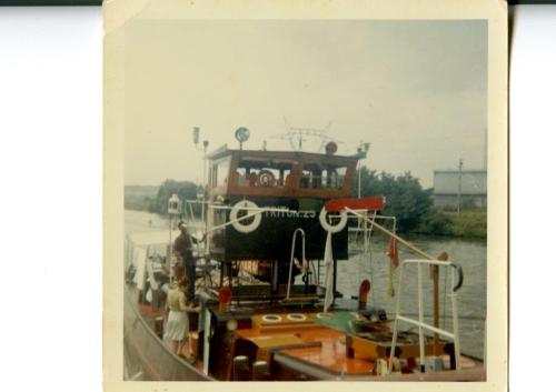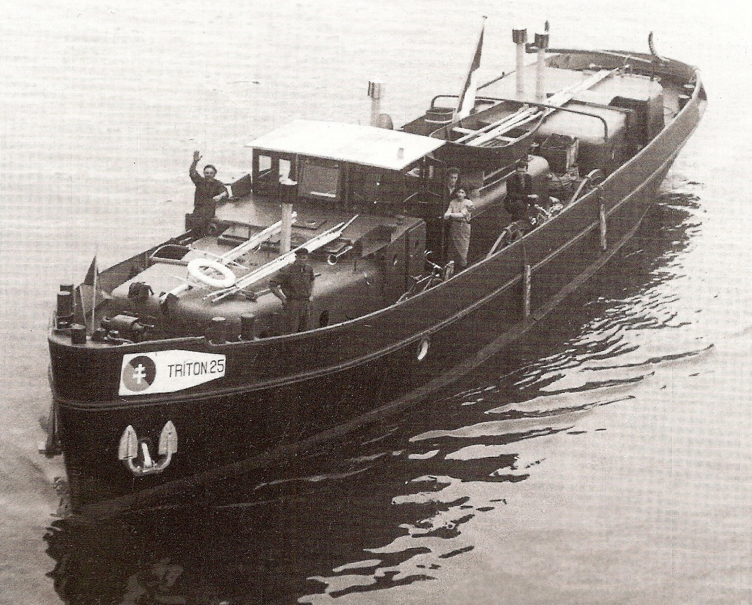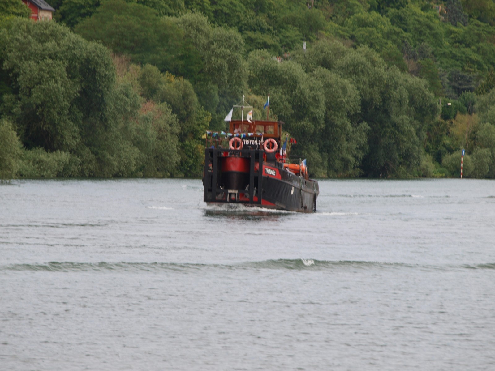Triton 25, montant sur le canal Saint Denis, pour le relai de la flamme Olympique du vendredi 26 Juillet, jour de l'ouverture des Jeux Olympiques de Paris 2024. Suivi du remorqueur Fauvette.