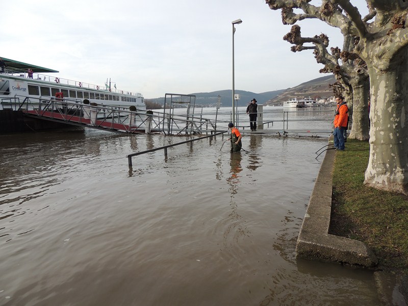 l'amarrage fut délicat car les bolards etaient immerger, c'est donc les pied dans l'eau que le matelot à mis les cables d'amarrage.