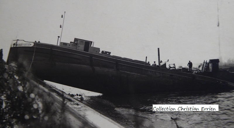 Le nom n'est pas visible, mais avec le matricule P.10320.F c'est doît être le "Jean Navarre". Construit à Villeneuve-le-Roi en 1927 pour S.A. de Transit Jules Roy. 26,50 x 5,75 x 1,90 m.360 ch, Diesel.